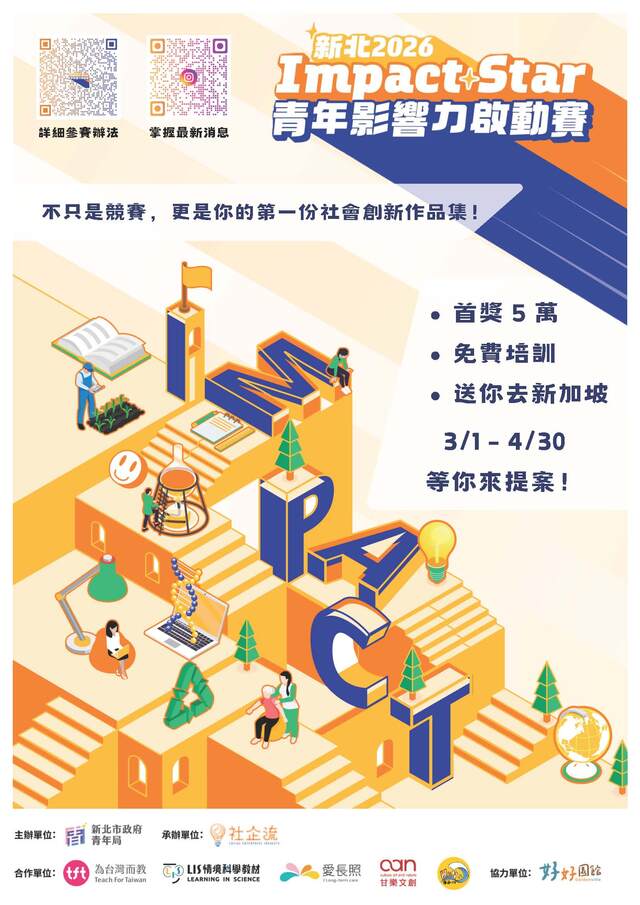 檢送「2026 Impact Star 青年影響力啟動賽」活動EDM及報名資訊,請各社區發展協會協助宣傳,鼓勵高中職及大專院校學生踴躍報名參加,請查照。